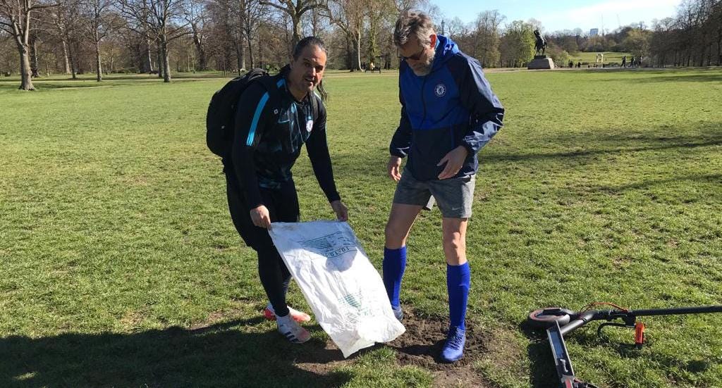 The Club algorithm this time, perhaps due to a glitch, did not appear to have picked the most balanced of teams but thanks to the heroics of Tony L the Bibbed goal remained unviolated for 20’ despite five close range attempts by the Unbibbed strikers. This morning burglars stole Tony’s bicycle but they could not take away his mettle and determination. As soon as they will know who the owner is, they’ll probably bring it back fully cleaned and with apologies.