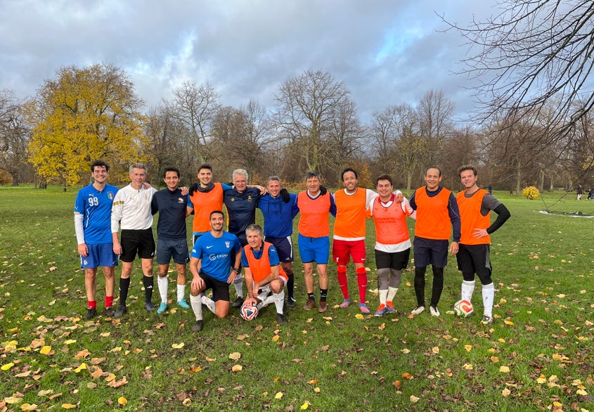 Boosted by Federico’s rare mistake, Colours went to extend the lead fairly comfortably with goals by Adam and a supreme solo effort by Dario who danced his way to Colours’ goal while Ross and Francesco mostly operated from the flanks to facilitate Orange raids. Adam scored yet again a hat trick despite being on the losing side. He has now consistently averaged 2.5 goals per game. Why does not Pep Guardiola buy Adam and sell Haaland who only averages less than half of what Adam does? Well, there are financial implication: by selling Haarland Man City would only raise a fraction of the money needed to buy Adam and their creative accounting and leveraged balance sheet is already being questioned in high places. Besides the FDs striker is simply not for sale.