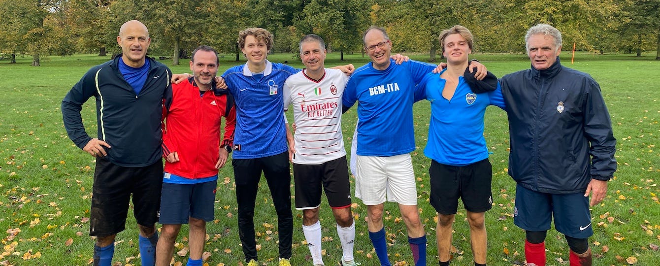 As exactly half of them were Italians, it was quickly decided to assemble an Azzurri team. Paride in goal, Massimo and Federico F (back after a long absence) in defense, Andrea “Puskas” in midfield and Francesco in attack flanked by youngster Giacomo and Diego.
