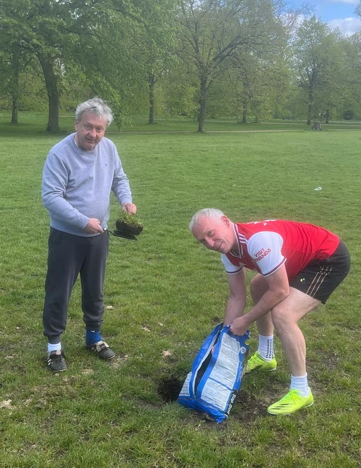 After the surgical intervention of the gardening team coordinated by Thomas the pitch was as green and even as a billiard table with 23 players calling the shots. Things like bad bounces of the ball or Kids taken out from the holes with a ladder were confined to the past.