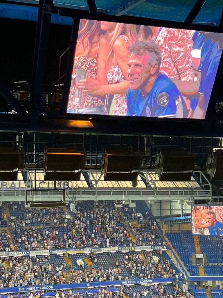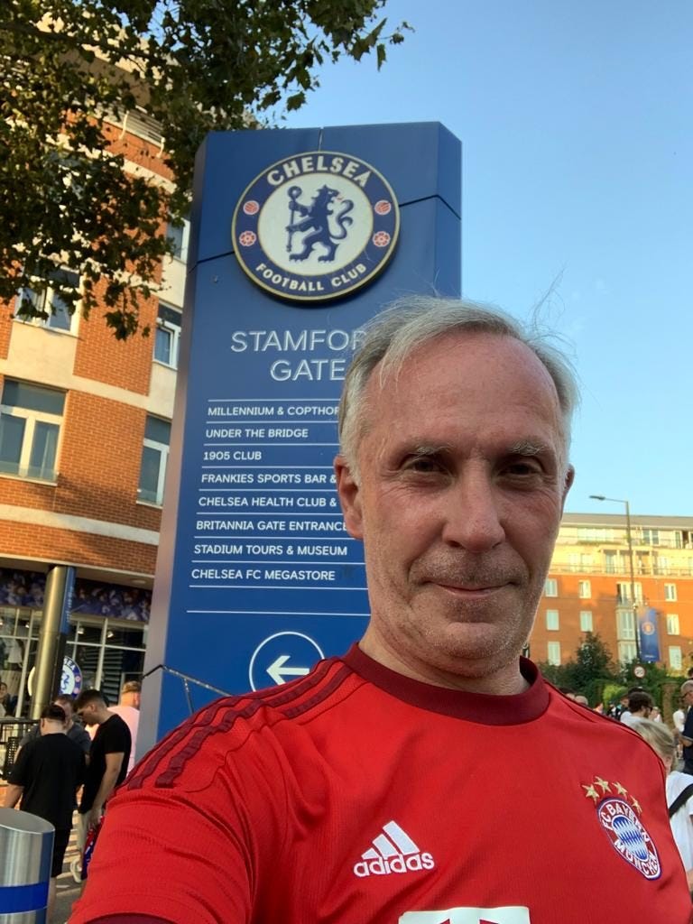 In the evening at Stamford Bridge, with several FDs among the crowd, the Chelsea Legends beat the Bayern Legends 4-0. The Bayern guys looked as if they had come straight from the Octoberfest, and averaged about 10 years more than their Chelsea opponents.