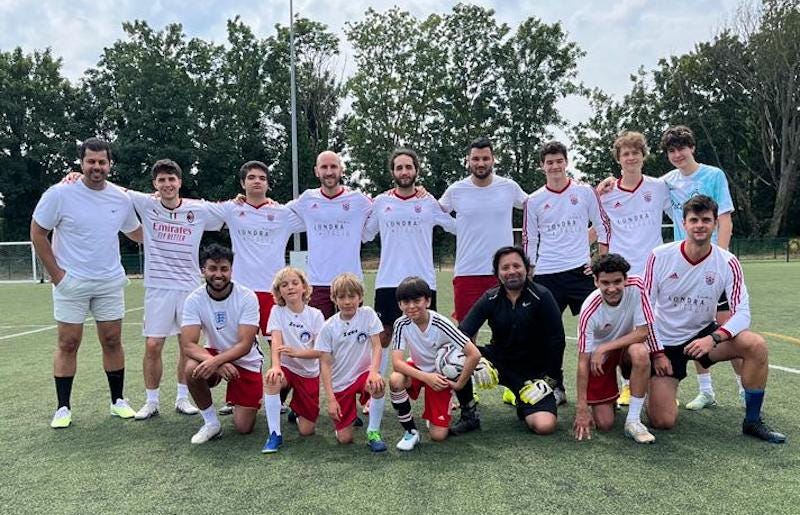 At half time in the Dads’ dressing room there was a growing feeling that the countless number of hours spent in the war room to deploy a cunning strategy were coming to fruition. At the start of the second half a pumped up Dads’ team further boosted by the presence of Nizar on the left wing increased the pressure. Francesco was presented with a glorious opportunity to equalise in the middle of the box but his shot just went above the bar by a whisker.