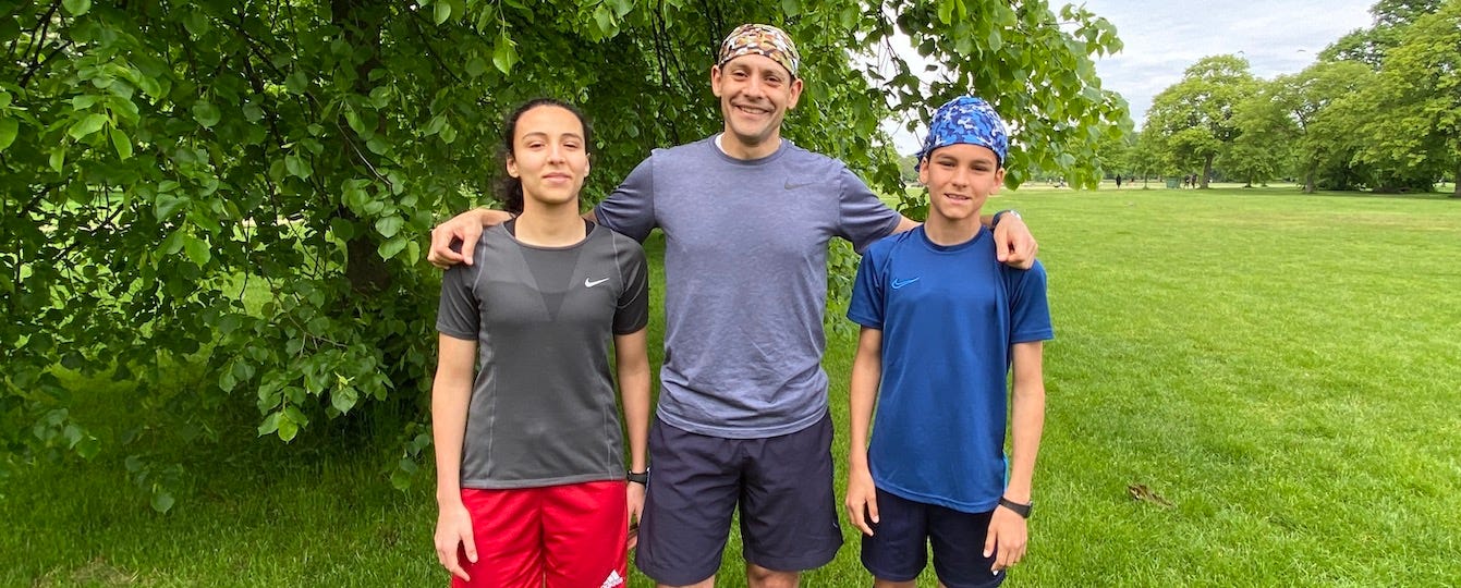 Hossam had already worn a bandana in the past a few times, with mixed results on the pitch and at home (including an unhappy wife, not impressed by a look widely associated with Mr.Berlusconi). Today Hossam decided to wear a special mimetic bandana and extended the benefit to his son Adam (see top picture) who played with him in the Bibbed team. Poor Sara was left without a bandana and played with the Unbibbed. If you are wondering whether it had an effect on the game, wait until you read the whole commentary.