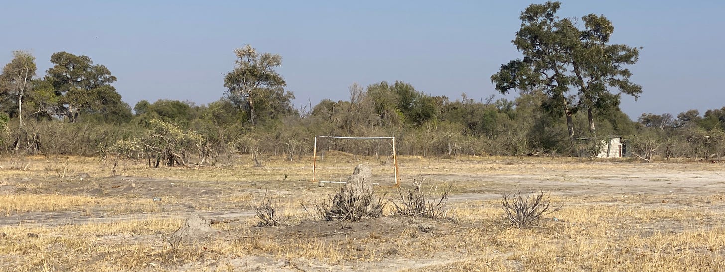 Top picture: a football pitch in a Botswana village