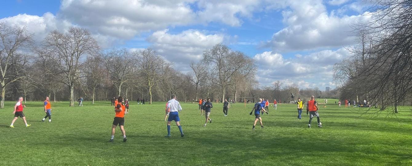 The park police remained distant today, careful not to spoil the atmosphere of the match. With so many fans around the pitch, it is now clear to them that the Football Dads are the highest attraction of the park, and they would soon be out of a job if we moved our football elsewhere.