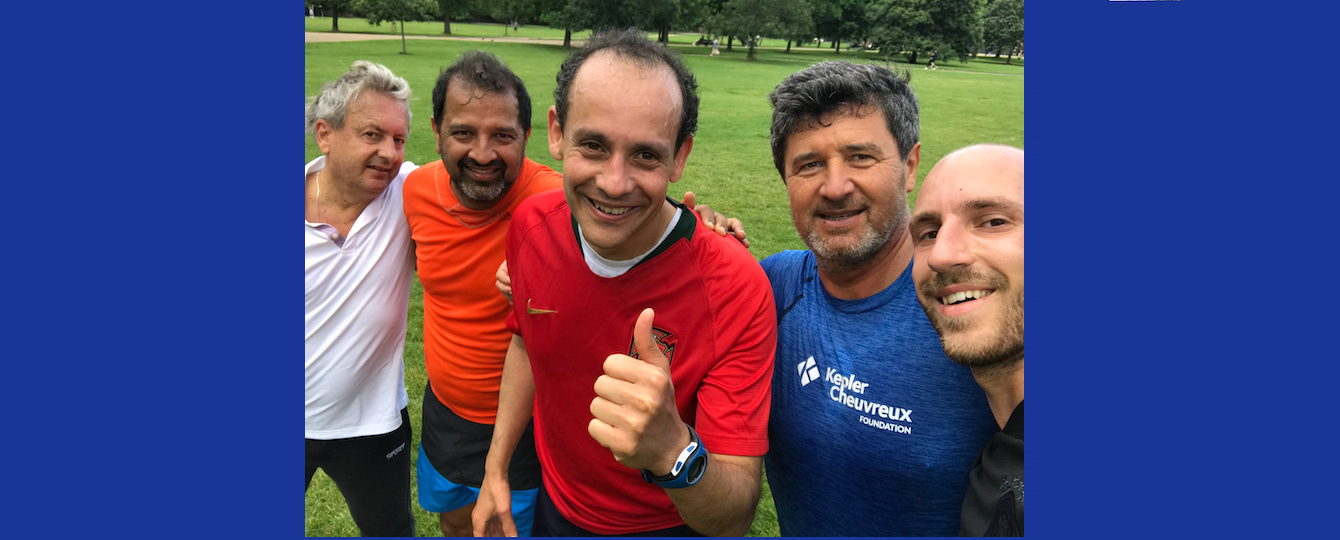 It was an exclusive gathering. Like if many were eager to join but only the Fab Five (see pic) were invited: Hossam, Giancarlo, Thomas, Johannes and Chetan made the most of the intimate game played on a rotating 2 v 2 with one keeper in one goal only . The offline rule applied to make players work hard for their goals.