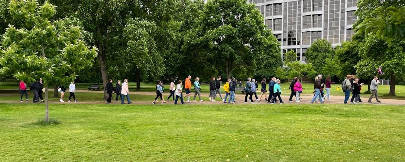 ‘ We just googled ‘most exciting things to do in London for the weekend’’. This is what the head of the tourists group in the picture said when asked what brought them down to Kensington Palace. When he then explained to his people that that would have implied missing out on the Jubilee he was met with the following redundant question: ‘ would you rather see a Queen or 14 Kings (of Football)?’