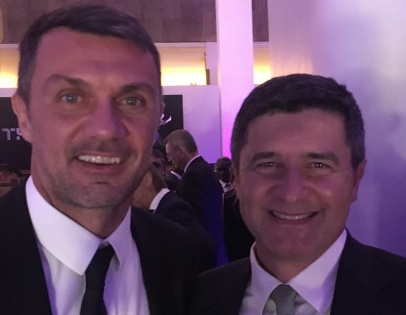 Dario and Ross gave additional hope to the Orange with clever goals but on the opposite front Francesco and Adam took advantage of the ample spaces provided by the Orange furious attacking, by outplaying defenders with clever passing and clinical finishing. Adam had a brace to his credit which, for such a prolific player, is just par for the course. Not even a defender like Chetan, widely accepted at every latitude as the new Maldini, could do much against the Colours’ tide. His strong performance nonetheless did not detract suitors from enquiring about his availability and market value, including the very Paolo Maldini (see pic below)