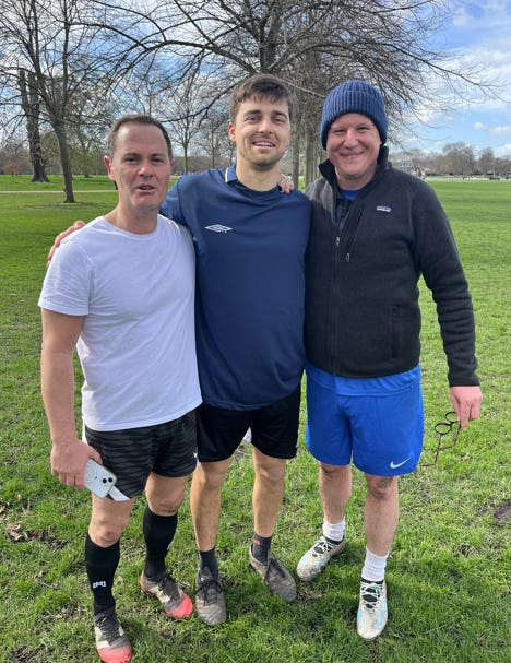 Christian was back gracing the Pond Pitch today where he found his football soul mate Matej to put up a defensive wall that not even Dario (in the middle) could break.
