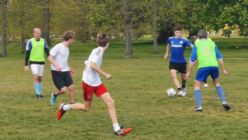 For the first twenty minutes the Bibs managed to keep most of the ball while the Unbibs struggled to do more than three passes in a row. But ball possession is a vanity metric. In football you need to score, and the supremacy of the Bibs remained sterile as they wasted several chances including a penalty.