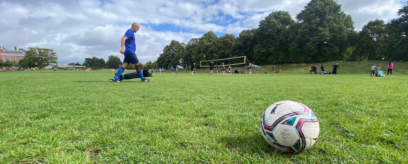 Luckily, Football Dads are known for their problem solving and social skills, and swiftly recruited four players from a nearby volleyball tournament. Dorian from Poland, Marian from Romania, Tom from England and Mitch (from either Ireland or Philippines, you choose) had come to the park to play with their hands, but were much happier when they were invited to use their feet instead. The four youngsters formed their own team, later reinforced by Luca, and a 5-5 side match was on.