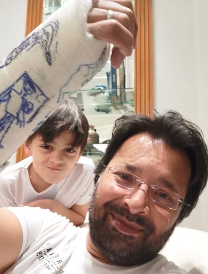 On the other side, the Bibs team (Johannes, Julien, Sara, Giancarlo, Hannes, Adam, Noah) suffered from various squad issue. For a start, they could not count on a proper goalkeeper, as TonyL precious right hand is now plastered to allow him to recover from last week’s injury (see photo below). To replace him they resorted to engage Hannes, who was at the pitch “only to watch”. Giancarlo joined late to try to find a missing post, and when Adam left early the only option was to replace him with a passer-by, young Noah.