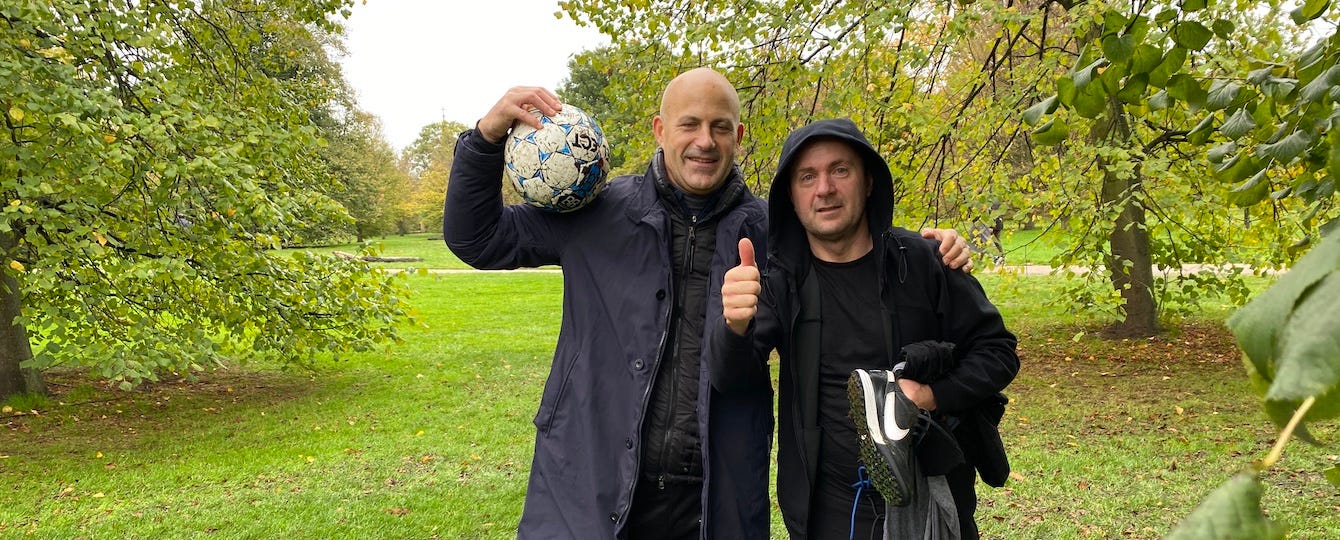 The Man of the Match award was not short of candidates: Johannes was again a default choice for the known reasons.Thomas was back in great shape administering the law in his proprietary area of operation leaving little if any to opposition. Francesco was a thorn on the right side winning most of the on on ones and providing countless assists. Romeo (pictured above with Paride) was the heart beat of the Colours dictating the tempo and linking defence and attack. But today the heart and soul of the winners was Hannes who held up defence impeccably and came agonisingly close to score a screamer. Shame we’ll miss him from next week as he joins the German national team in Doha.