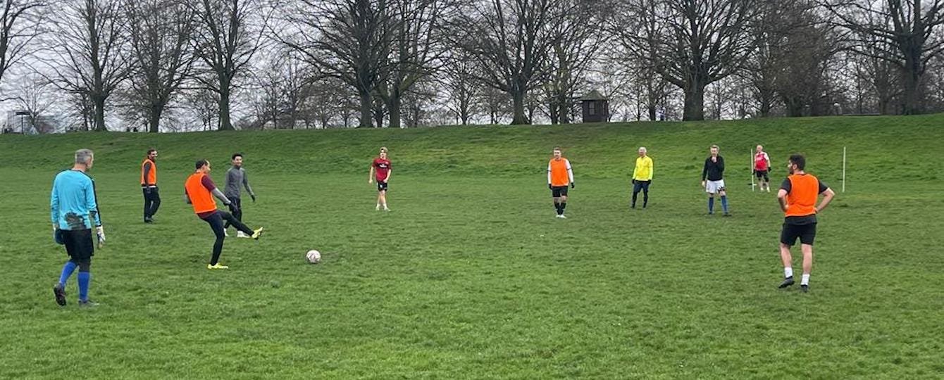 The Oranges had started the 4-side match better, going ahead 3-1. Playing with Alessandro, Hossam, Bijan and rookie Dawood, on a muddy Palace pitch, they had been able to outplay a Colours team that included veterans Massimo, Hannes and Julien, and youngster Adam.